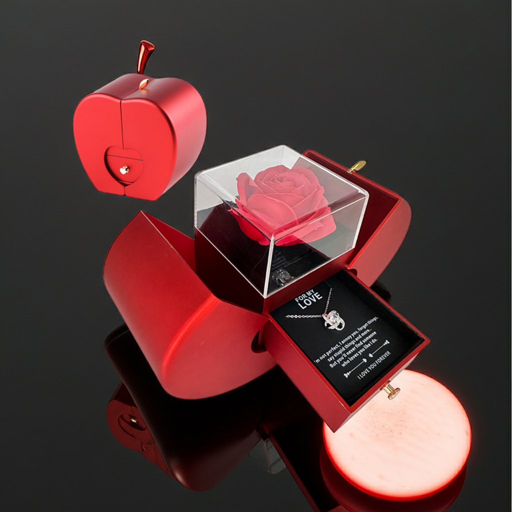 4. Clever Design: The designer designed a rose jewelry box into a cute fruit shape, which makes people like it very much. When you open it, you will find a beautiful eternal flower inside the fruit.